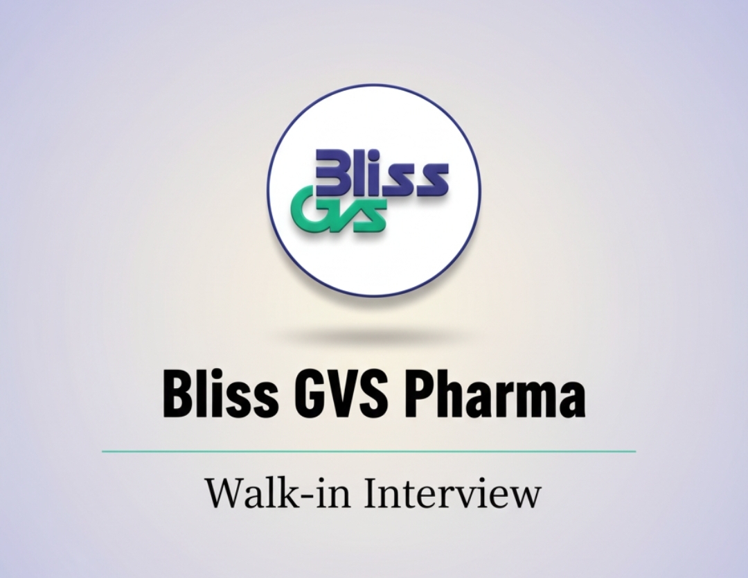 Bliss GVS Pharma jobs for Production, Quality Control, Warehouse, BPharm, BSc, MSc are creating strong opportunities for experienced pharma professionals through a walk-in interview at a reputed manufacturing location. This hiring drive is focused on skilled candidates who want to build a stable and growth-oriented career in a regulated pharmaceutical environment with modern facilities and learning exposure.