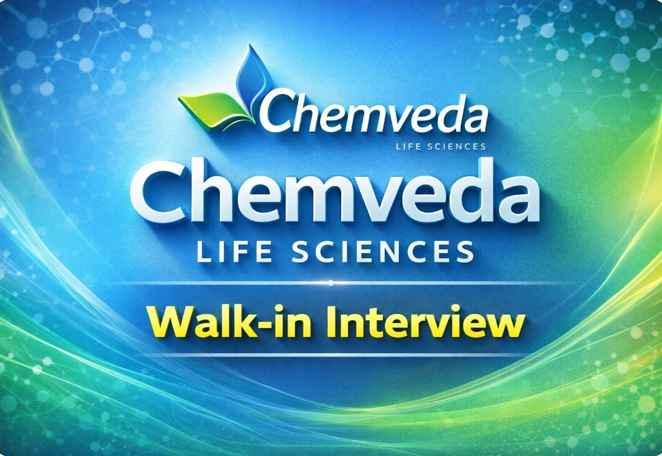 pharma jobs seekers looking for opportunities in analytical research and development can explore this excellent walk-in drive by Chemveda Life Sciences for experienced professionals in R&D roles. This hiring drive is ideal for candidates with strong analytical chemistry knowledge who want to build a career in advanced research and development in the pharmaceutical industry.