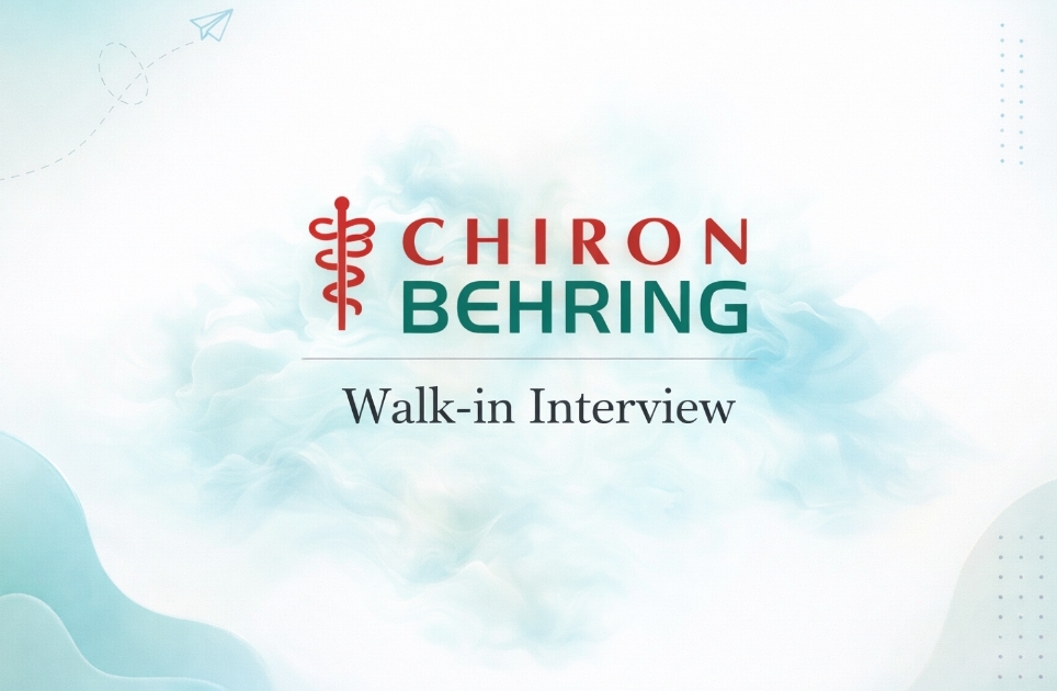 Candidates searching for Chiron Behring Pharma jobs for Production, Quality, Visual Inspection, Packaging, BPharm, MPharm, BSc, MSc, Diploma, ITI can now apply through a scheduled walk-in interview. This walk-in drive provides career openings for freshers and experienced candidates in a regulated vaccine manufacturing environment with hands-on exposure to sterile formulation operations and quality roles.