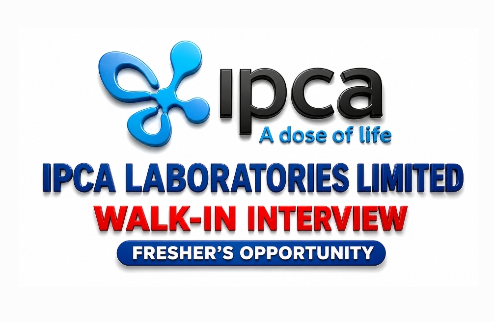 Pharma jobs seekers looking for freshers opportunities can explore this excellent walk-in drive by Ipca Laboratories, offering hands-on training and career growth in Quality Control with stipend support and real industry exposure.