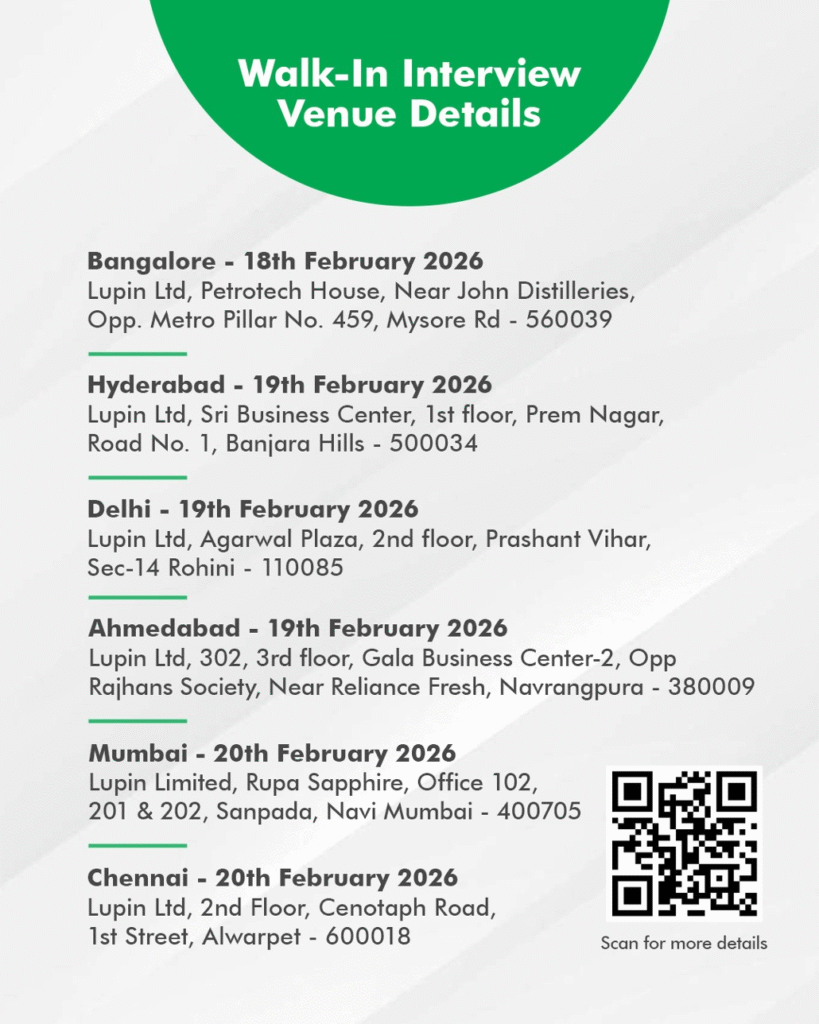 Lupin Pharma jobs are creating a strong hiring buzz with a multi-city walk-in interview drive focused on sales and marketing roles. This opportunity is ideal for young graduates looking to start or grow a career in the pharmaceutical industry with a reputed global company that values diversity, inclusion, and on-ground market presence. Candidates can directly attend interviews across major Indian cities on scheduled dates and interact face-to-face with the hiring team.