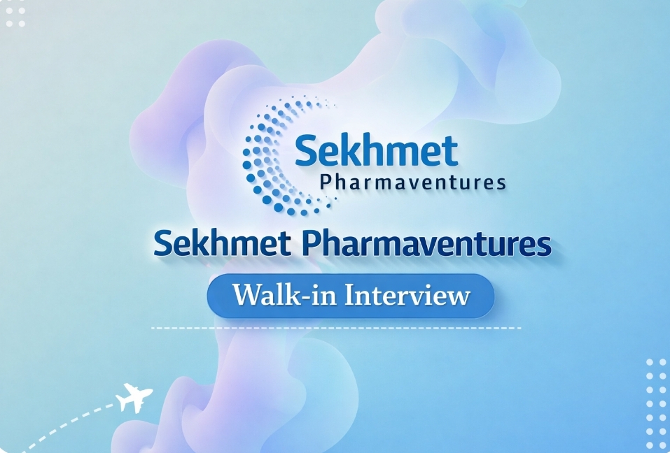 Sekhmet Pharmaventures Pharma jobs for Production and Quality Control, MSc Chemistry are currently available through a walk-in drive offering multiple experience levels suitable for both freshers and experienced candidates.