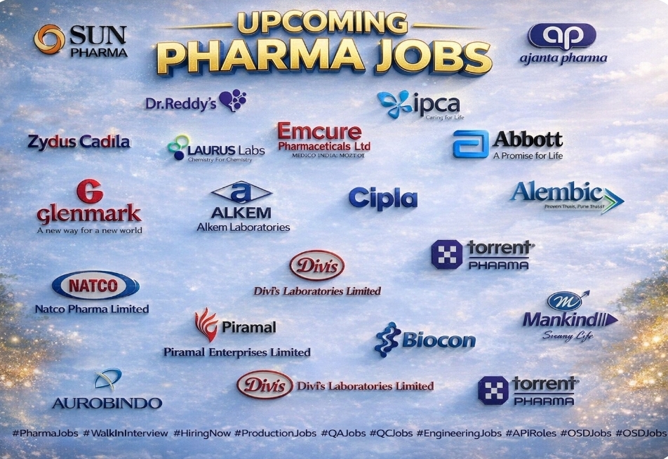 This article highlights 8 leading pharmaceutical companies currently offering excellent career opportunities for freshers and experienced professionals across Production, QA, QC, Manufacturing, and allied departments. These companies are well known for strong GMP culture, quality-driven operations, and long-term career growth in the Indian pharmaceutical industry.