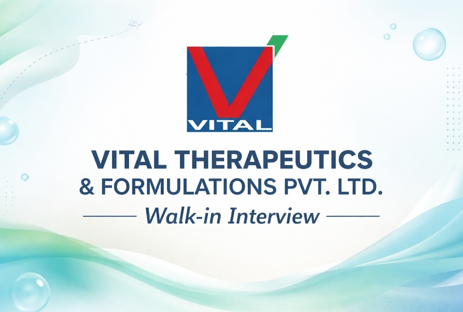 Vital Therapeutics Pharma jobs for Maintenance QC Production BTech BPharm MPharm MSc BSc bring an excellent walk-in opportunity for candidates seeking careers in formulation manufacturing, quality control, and production chemistry. This hiring drive is ideal for both experienced professionals and recent graduates who want to begin or advance their journey in a reputed pharmaceutical organization. With competitive exposure and a professional work culture, this opportunity can help candidates build a stable and rewarding pharma career.